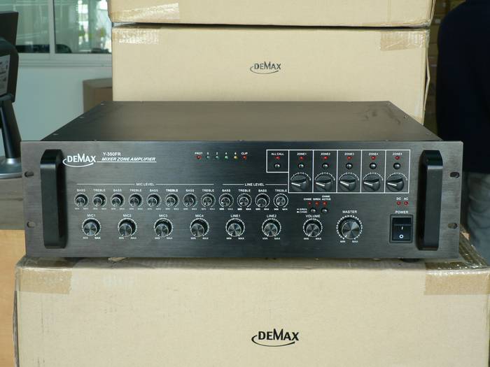 The uniqueness of this amplifier is that the 5 zone outputs with separate volume control, which provide flexible zone control. Each 6 inputs are equipped with bass/treble tone controls.